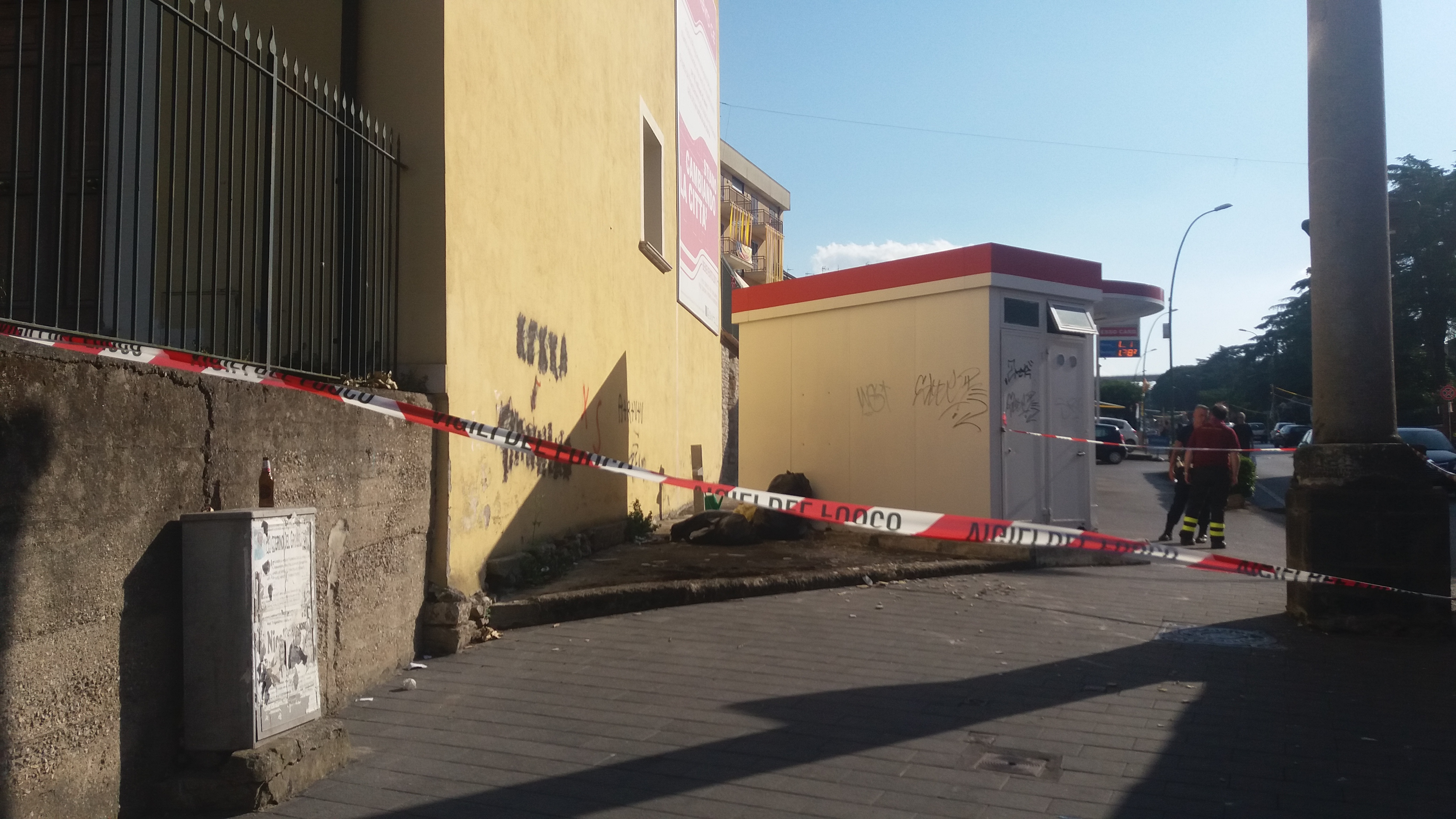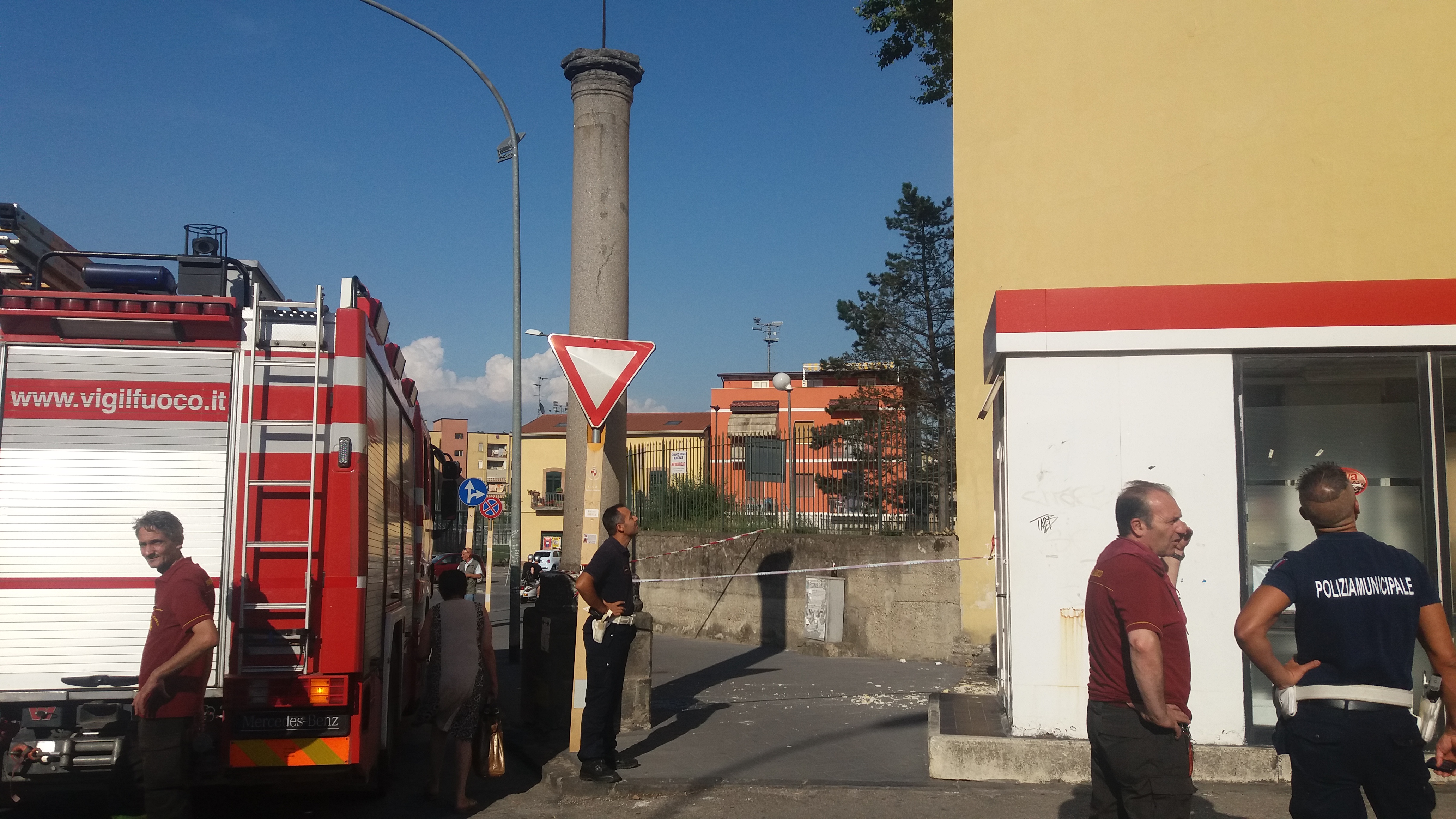 BENEVENTO – Cadono calcinacci dalla facciata laterale del piccolo Teatro Libertà a via Napoli. Sul posto sono intervenuti i vigili del fuoco e la municipale per la messa in sicurezza dell’area che è stata recintata con nastro bianco e rosso. Per fortuna i pezzi di intonaco staccatisi dalla facciata non hanno provocato danni nè a persone tantomeno a cose. Alcuni calcinacci sono piovuti sul gabbiotto della stazione di servizio Esso. Traffico rallentato per le operazioni di messa in sicurezza. Ora si dovrà provvedere alla risistemazione della parte.