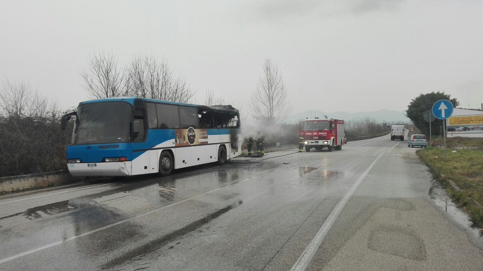 Dugenta| Paura sulla Fondovalle Isclero, fiamme nel pulman dell’Eav
