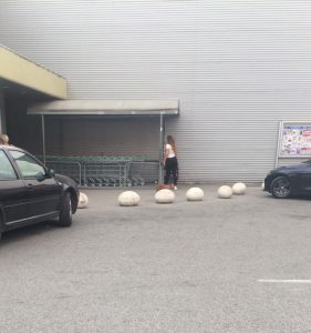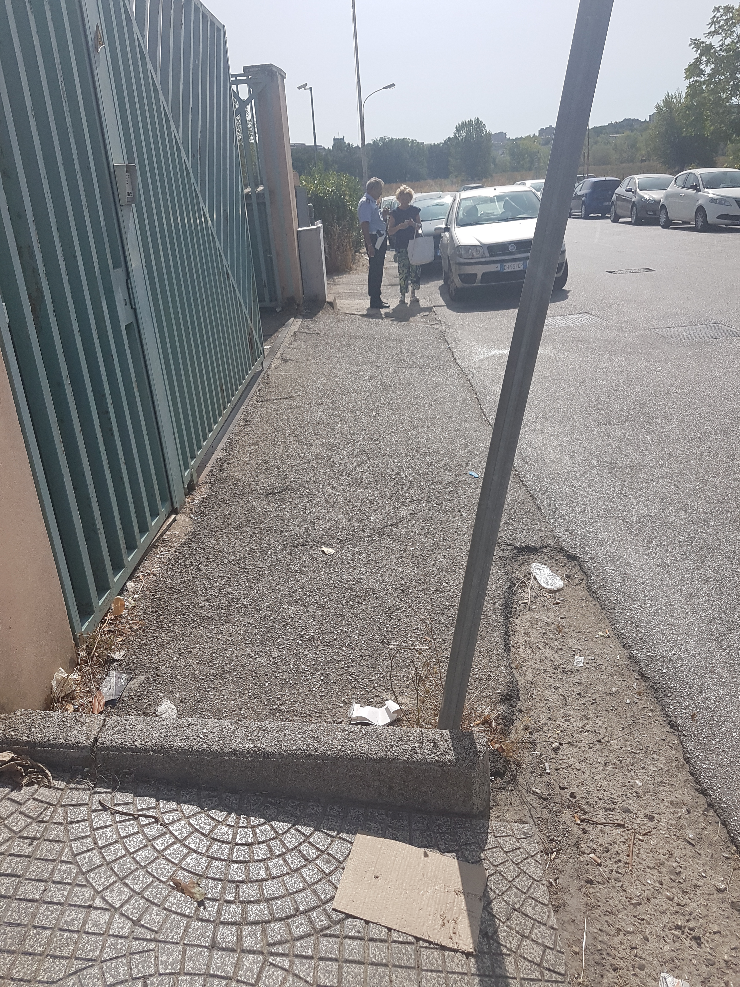 Prima dell’intervento dei Vigili,una passante offre soldi alla rom (si intravede il cane)