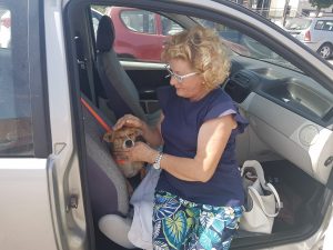 Il momento del recupero del cane (Il Vigile Urbano con delega all’ambiente e Geltrude Fucci Vice presidente Lega Difesa del Cane -Sezione di San Giorgio del Sannio)