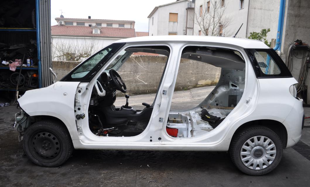 Appena entrati nell’autodemolizione, gli agenti hanno notato tre persone intente a smontare un’autovettura Fiat 500 L di colore bianco. Il veicolo si presentava già privo di targhe, portiere, sedili e tappezzeria interna. Presente sul posto anche il titolare dell’autodemolizione, un noto pluripregiudicato del posto, che supervisionava le attività di smontaggio.