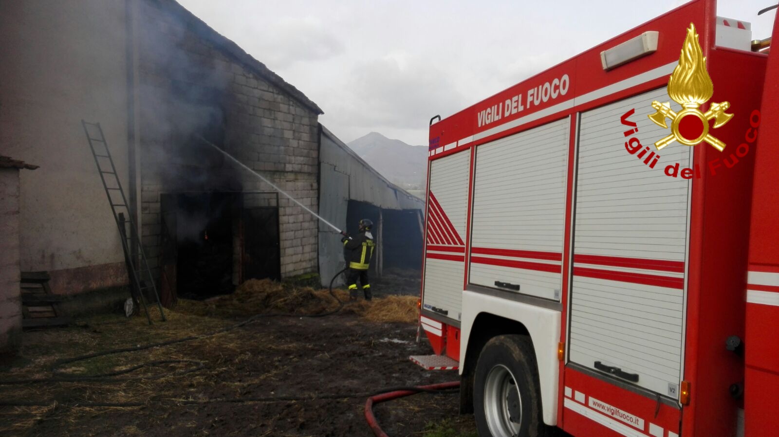 Vigili del Fuoco in azione a Volturara Irpina, in via Sava, per un incendio che ha interessato un deposito agricolo con circa cento rotoballe di fieno al suo interno. La sala operativa del Comando di via Zigarelli ha inviato sul posto la squadra del distaccamento di Montella e un’autobotte dalla sede centrale.