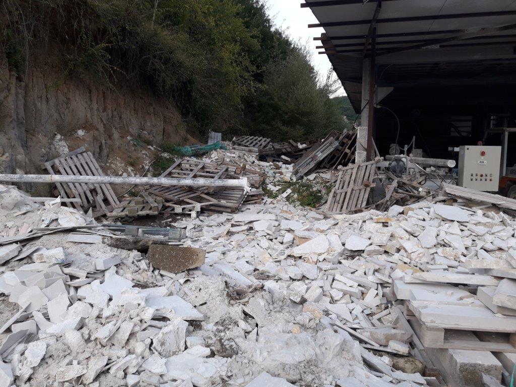 Pertanto, i Carabinieri hanno denunciato il titolare, un imprenditore 51enne del luogo, per le violazioni sopra descritte ed hanno posto sotto sequestro 3 capannoni industriali per complessivi 1.000 mq circa, attrezzature per segare e lavorare la pietra, per un valore complessivo di circa un milione di euro, nonche’ mc 30 di rifiuti costituiti da polvere di marmo, fanghi di sedimentazione, imballaggi e materiale abrasivo.