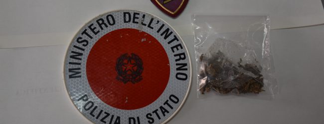 Gli agenti durate il regolare servizio di controllo del territorio procedevano a fermare e sottoporre a controllo il giovane appiedato nei pressi di via Traiano. Insospettito dall’insolito stato di nervosismo e agitazione manifestato dal ragazzo, il personale operante decideva immediatamente di effettuare una perquisizione che dava esito positivo. Infatti lo stesso veniva trovato in possesso di una bustina in plastica con all’interno quattro grammi di marijuana.