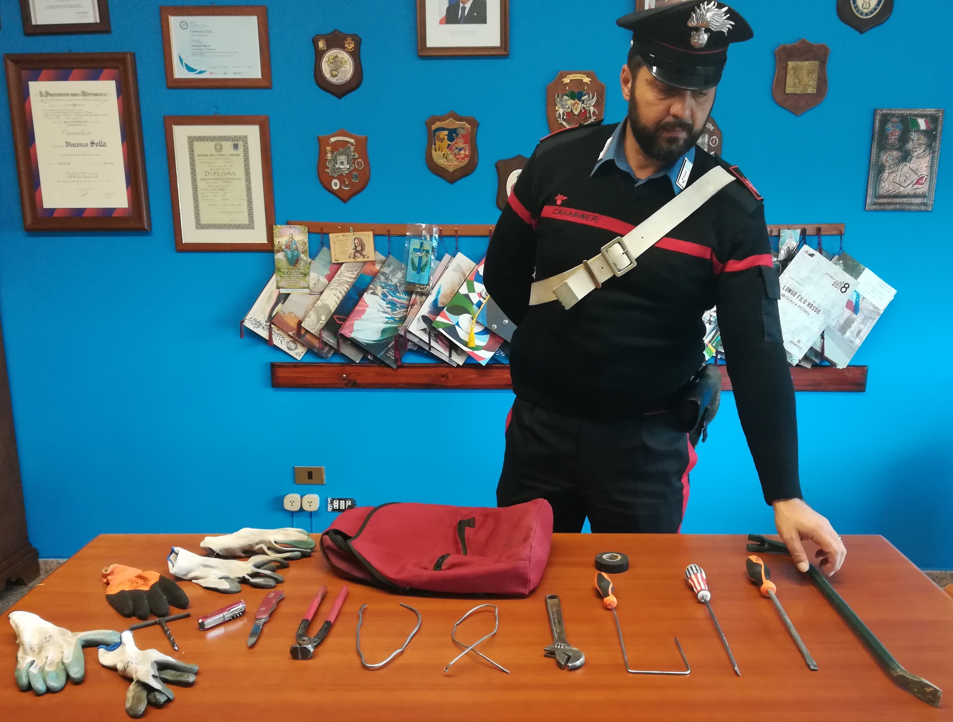 Dai successivi accertamenti sull’auto si constatava che la stessa era stata rubata poco prima in una frazione di Sant’Angelo a Cupolo, ad un 49enne del luogo e, nel corso della perquisizione veicolare nell’autovettura all’interno di uno zaino sono stati rinvenuti diversi attrezzi tipici e atti allo scasso. Sia l’auto che tutto il materiale è stato posto sotto sequestro per i rilevi e gli accertamenti del caso, mentre sono in corso le indagini per risalire all’identità dei tre fuggitivi, che verosimilmente era alla caccia di qualche abitazione da depredare.