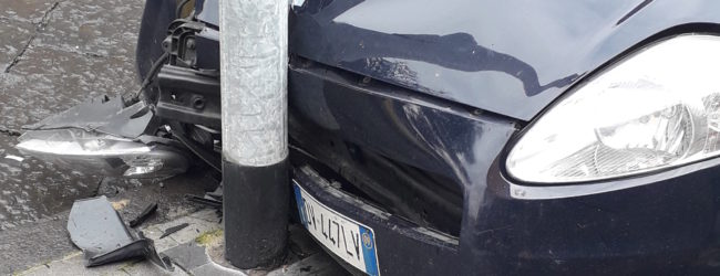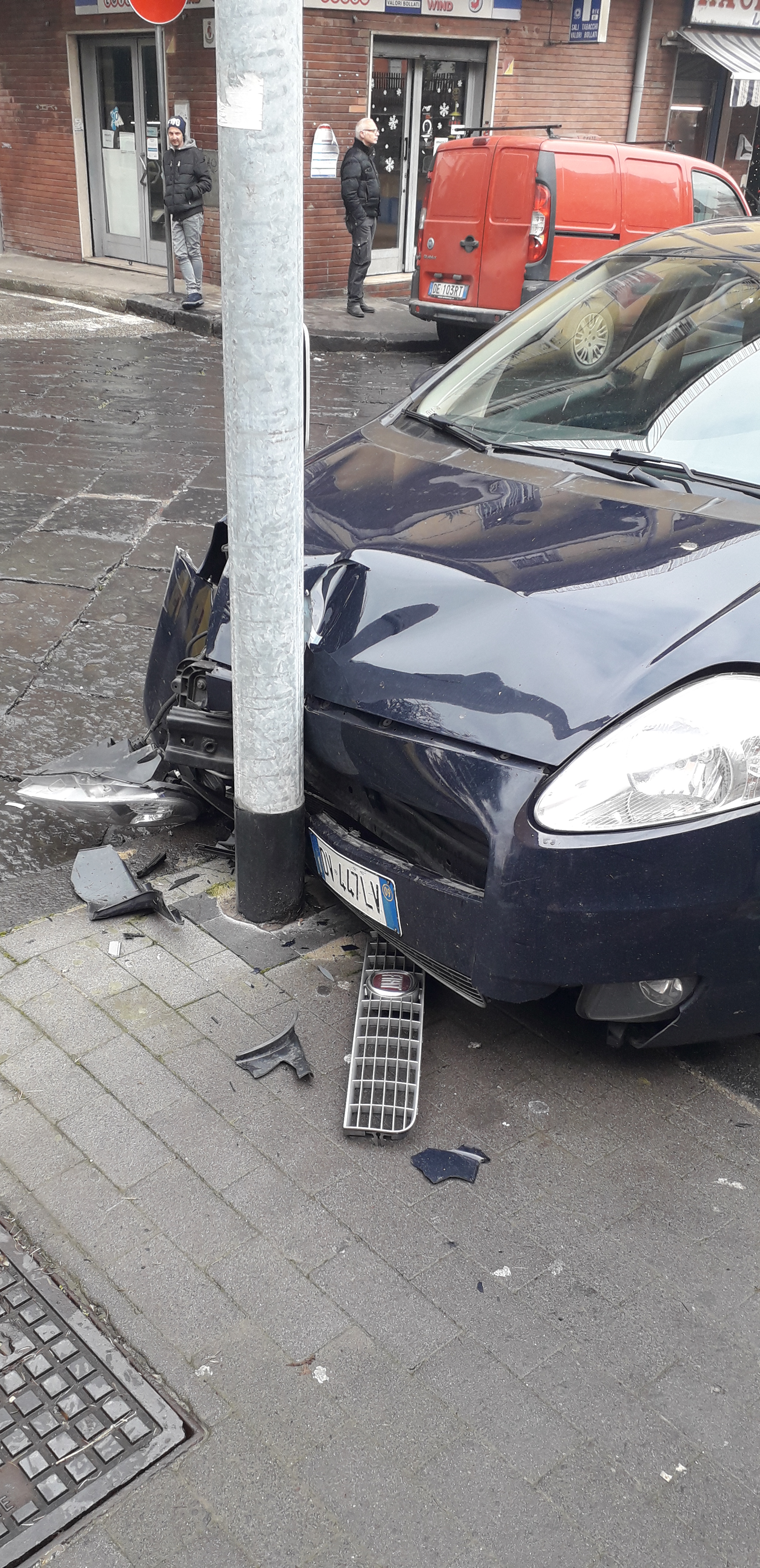 Incidente stradale in via Tiengo ai piedi dell’arco di Traiano.Una giovane alla guida della sua Fiat Bravo, per cause in corso di accertamento è salita sul marciapiede urtando violentemente contro il palo della videosorveglianza. Per la giovane solo tanta paura nonostante il forte impatto.