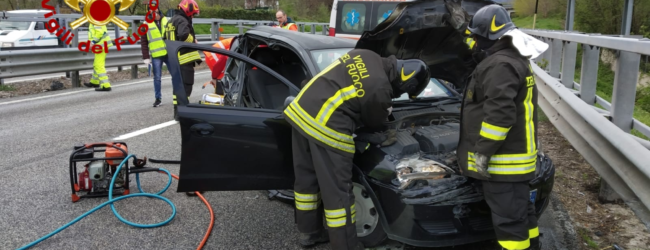 I Vigili del Fuoco di Avellino sono intervenuti sull’autostrada A16 Napoli-Canosa, nel territorio del comune di Mercogliano, sulla corsia in direzione Napoli, per un incidente stradale che ha visto coinvolti due veicoli, un’autovettura ed un furgone. A bordo dell’auto vi erano quattro ragazzi di cui uno rimaneva incastrato nell’abitacolo, e solo il conducente nel furgone. Tutti rimasti feriti i cinque occupati, i quali venivano trasportati dai sanitari del 118 intervenuti presso l’ospedale Moscati di Avellino per le cure del caso. Rallentamenti si sono registrati sull’importante snodo viario durante le opzioni di soccorso.