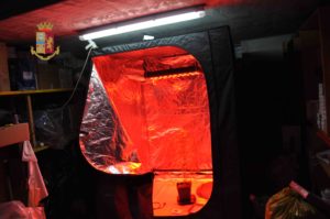 L’uomo è stato tratto in arresto, su disposizione del P.M. di turno, perché gravemente indiziato dei delitti di coltivazione, produzione e detenzione ai fini di spaccio di sostanza stupefacente.