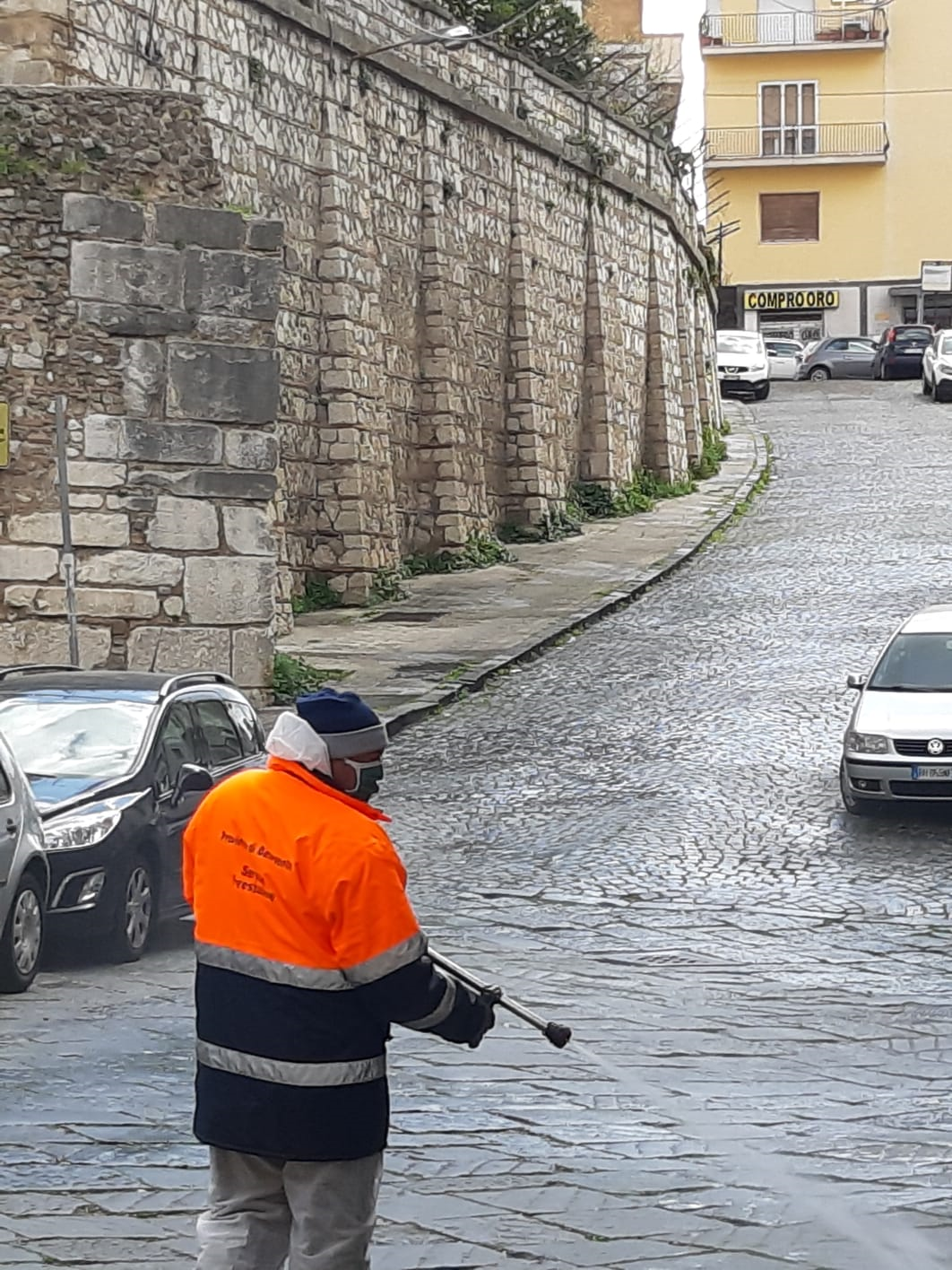 L’operazione ha visto l’attività congiunta della locale Stazione dell’Arma dei Carabinieri, della Polizia municipale nonché della Polizia penitenziaria. Un’azione interforze proprio per dare un segnale fortissimo all’intera popolazione. E’ arrivato il momento di ribadire, chiaramente, che bisogna restare in casa, non si può più scherzare perché stiamo entrando nella fase di maggiore criticità, cosi il primo cittadino di Airola. Anche Montesarchio è una cittadina blindata. Grazie anche alle nuove telecamere installate nel paese caudino, con l’acquisto di ulteriori 5 occhi elettronici, che presidieranno le zone interessate dal circolo delle auto. e eventuali assembramenti di cittadini. Anche qui la parola d’ordine del primo cittadino Damiano è: restare a casa il piu’ possibile. A Benevento la Municipale è in prima linea per il controllo su strade. In questi giorni non sarà la sola, avrà in dotazione il drone inaugurato qualche settimana fa allo stadio Vigorito. Il drone infatti potrà aiutare il corpo di polizia sorvegliando dall’alto la città e aiutando nella ricerca dei trasgressori. Un drone che non supererà l’altezza dei 70 metri opera in un area di oltre 25o metri. Non solo Municipale che nella giornata di martedì ha visto controlli a tappeto tra gli automobilisti in circolo e due denunce, ma in campo anche la Finanza del capoluogo che sta operando sugli esercizi commerciali. Infine e non per ultimo in questi giorni si sta procedendo alla sanificazione e disinfestazione della città da parte degli operatori del Servizio Forestazione della Provincia, d’intesa e con il supporto dell’Asia, l’Azienda di Igiene Ambientale. Questa mattina gli operatori si sono recati al Teatro Romano,al Triggio, piazza Manfredi di Svevia, piazza Orsini e strade limitrofe. Inoltre giovedì mattina la zona Asi di Ponte Valentino sarà interessata da un’attività di lavaggio e sanificazione delle strade consortili”. Ad annunciarlo è il presidente del Consorzio Asi della Provincia di Benevento, Luigi Barone che parla di ulteriore attività con garanzia di lavaggio e sanificazione di tutte le strade dell’agglomerato con detergente a base di sali quaternari di ammonio con azione sanificante nel rispetto delle direttive del decreto del Presidente del Consiglio dei Ministri dell’11 marzo scorso”.