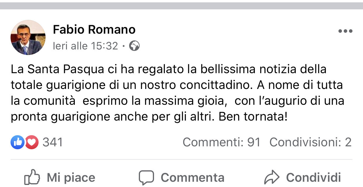 Non solo il 22enne di Guardia Sanframondi: da ieri è ufficialmente guarita anche la 26enne di San Salvatore Telesino. La prima a contrarre il virus dal “paziente 1”: si trovava anche lei ad una festa dove partecipò il militare di Guardia. Fu, inoltre, tra le prime persone  ad essere trasportata al San Pio di Benevento con sintomi da Covid. La notizia è stata rilanciata dal sindaco Fabio Romano con un post Facebook