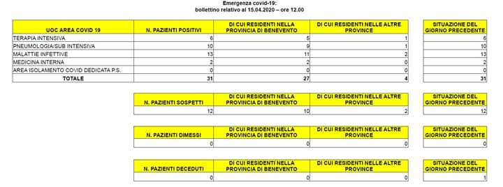 Nessuna novità dal bollettino delle 12:00 del San Pio di Benevento. Il numero dei pazienti ricoverati è lo stesso della serata di ieri: in totale sono 31 le persone positive e in cura nell area covid dell’ospedale sannita, di cui 27 sannite. E proprio ieri il Sannio ha pianto la sua tredicesima vittima: una 68enne di Arpaia, ma residente a Santa Croce del Sannio, comune in cui il marito in passato aveva ricoperto la carica di segretario comunale. E’ stata la 18esima persona morta per Covid nell’ospedale Benevento, la sesta che proveniva da Villa Margherita su un totale di 15. La donna, dopo un intervento al cuore nella clinica Montevergine di Mercogliano si trovava da diverse settimane nel centro focolaio sannita. Il destino beffardo ha voluto che la donna, poco prima della dimissione, abbia contratto il virus e da qui il ricovero in ospedale. Dopo giorni in terapia intensiva, ieri la tragica morte. E proprio su Villa Margherita sono in corso le indagini promosse dal pool di magistrati della Procura della Repubblica di benevento coordinato dal dottor Policastro, che intervendo al forum di Libera ha espresso il convincimento che sulle cause che hanno prodotto la virulenza dell’epidemia presso Villa Margherita si debba indagare a fondo per individuare eventuali responsabilità