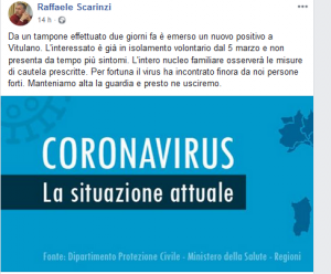 Tornano a crescere i casi di Coronavirus nel Sannio. L’ultimo bollettino dell’Asl fa registrare un aumento di sei nuovi positivi: quattro nel comune di Paolisi, come già annunciato ieri dal sindaco Maietta, uno a Benevento e l’altro a Vitulano. Anche in questo caso a darne notizia, prima del report ufficiale, è stato il sindaco Raffaele Scarinzi attraverso un post su facebook. “L’interessato è già in isolamento volontario dal 5 marzo e non presenta da tempo più sintomi – si legge nel post – L’intero nucleo familiare osserverà le misure di cautela prescritte. Per fortuna il virus ha incontrato finora da noi persone forti. Manteniamo alta la guardia e presto ne usciremo.” cosi il sindaco che ha rassicurato i suoi concittadini. Il nuovo caso di Vitulano, il secondo nella cittadina, si aggiunge al folto numero di pazienti positivi al covid in assistenza domiciliare. Ora sono ben 89 le persone che si trovano presso la propria abitazione, 24 invece si trovano al San Pio di Benevento e 29, invece, sono ricoverati in altre strutture. Numeri che sommati danno un totale di 144 persone attualmente positive al virus. Va registrato, però, un aumento anche dei guariti, ora sono 7, una persona in più rispetto a ieri. Dal San Pio invece è stato dimesso un caso sospetto, mentre resta invariato il numero dei pazienti ricoverati: 28, di cui 24 residenti nella provincia di Benevento. Rimanenedo in tema di numeri ieri sono stati 64 i casi positivi in Campania su un totale di 2.401 tamponi. Il dato complessivo dei casi in campania è di 3.951