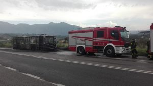 Sono da poco termine le operazioni di spegnimento di un rogo che ha distrutto completamente un autobus  lungo la Telesina, a poco distanza dall uscita di Cerreto Sannita. A bordo dell’autobus di linea  era presente soltanto il conducente che, al principio di incendio sulle cui cause sono in corso accertamenti, è riuscito a fermare il mezzo  e ad avvisare i soccorsi.