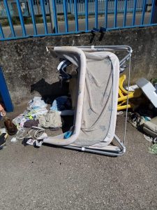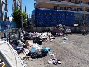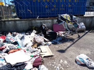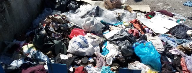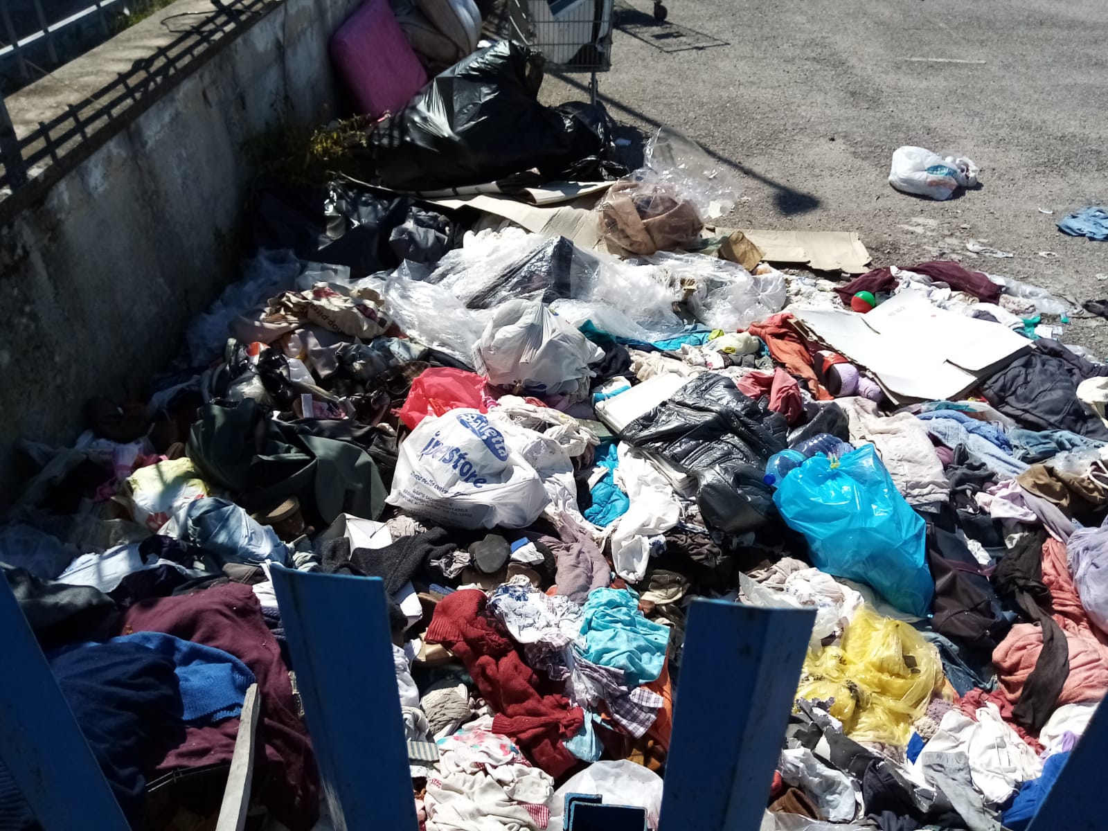 Quintali di abiti usati, sacchi della spazzatura indifferenziata,materassi, box per bambini e ancora farmaci e immondizia di ogni tipo: una brutta visione, uno spaccato di inciviltà che impera in un parcheggio del centralissimo Centro Commerciale di San Giorgio Del Sannio. Si tratta di una vera e propria discarica a cielo aperto che campeggia in uno spazio pubblico riservato ai clienti del centro commerciale per il parcheggio.Siamo in via Cesine,una strada trafficata dove nel raggio di pochi metri ci sono attività commerciali, la pista di pattinaggio e più avanti anche il cimitero.Dalla quantità di materiale accumuulato si presume che la spazzatura sia stata abbandonata illegalmente nel corso dei giorni, anche perchè molti sacchetti risultano deteriorati, ma possibile che nessuno si sia accorto di nulla? E soprattutto chi è il responsabile di questa scultura di immondizia lasciata in un parcheggio? La mole di abiti dismessi lascia pensare che si tratti di abbigliamento destinato alla raccolta dei vestiti usati per i poveri, ma allora perchè lasciarli sull’asfalto mescolati con la spazzatura?
