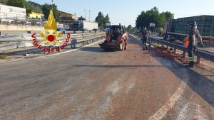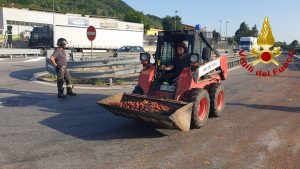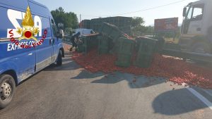 I Vigili del Fuoco di Avellino sono intervenuti sulla SS 7 BIS, nel territorio del comune di Atripalda, per un autotreno che ha perso i cassoni con i pomodori. La squadra intervenuta anche con l’ausilio di una macchina di movimento terra, ha rimosso l’ingombro stradale liberando la carreggiata. Ripercussioni si sono avute per la circolazione stradale, ma per fortuna nessuna persona ferita.