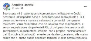 Un altro decesso al “San Pio” di Benevento. E’ deceduto un 69enne di Torrecuso ricoverato solo pochi giorni fa. A comunicarlo il sindaco del comune sannita, Angelino Iannella. Si tratta della terza vittima residente a Torrecuso, la quinta vittima sannita da inizio agosto.