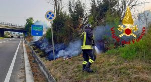 Complici i primi caldi della stagione, sempre i caschi rossi del capoluogo irpino sono stati impegnati in diversi interventi per roghi che hanno interessato sterpaglie e macchia mediterranea. Uno di questi interventi è stato svolto lungo la SS 7, nel territorio del comune di Manocalzati, dove i fumi della combustione avevano anche invaso parte della carreggiata. Le fiamme sono state spente, bonificando l’area.