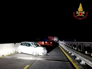 Incidente stradale tra un autoarticolato e un’auto,  feriti i conducenti. I Vigili del Fuoco di Avellino sono intervenuti sull’autostrada A 16 Napoli – Canosa, al Km. 31.700 in direzione Napoli, nel territorio del comune di Monteforte Irpino. Nell’impatto tra i due veicoli il mezzo pesante si metteva di traverso sulla carreggiata, di fatto ostruendola, e i due rispettivi conducenti rimanevano feriti, e venivano prima visitati sul posto dal personale medico intervenuto e poi trasportati presso l’ospedale Moscati di Avellino per essere sottoposti a controlli. Bloccata la corsia in direzione Napoli per il tempo necessario alle operazioni di soccorso e per liberare la carreggiata dai veicoli incidentati.