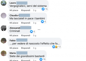 Profili fake, haters, ma non solo: la comunità di odiatori seriali e dei no-vax si è riversata sulla pagina dell’esponente dell’amministrazione telesina. E’ come se avessero risposto, da tutta Italia, a un preciso segnale, una sorta di comando. “Vergognatevi – scrive un altro -, questo è un abominio, crudele e antiscientifico, un sacrificio di anime pure al dio profitto… Norimberga tornerà e giustizia trionferà”; e non mancano attacchi e offese: “Buongiorno signora Venditti la aspetta un’altra, l’ennesima, giornata da venduta…”; fino a commenti che oltrepassano il limite, per gravità e per il livello delle offese: “La mentalità mafiòsa campàna non si smentisce mai”.