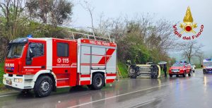 Due incidenti stradali di una certa gravità si sono registrati in Irpinia nel pomeriggio di oggi quasi contemporaneamente. Sul posto i vigili del fuoco di Avellino. Il primo ha visto impegnata la squadra del distaccamento di Grottaminarda intorno alle 14.30 nel territorio del comune di Flumeri, sulla SS 91, in contrada Tre Torri, dove un’autovettura è sbandata e si è ribalta (foto in basso).