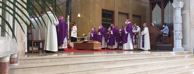 Al Duomo di Benevento l’ultimo saluto a Mons. Francesco Zerrillo, Arcivescovo Emerito di Lucera -Troia,morto lo scorso 14 maggio. Il feretro è stato esposto per il saluto dei fedeli prima nella chiesa parrocchiale di Reino, suo paese natale, e poi trasferita nella cattedrale di Benevento dove nel pomeriggio si sono tenuti i funerali solenni, con la Santa Messa esequiale presieduta dall’ Arcivescovo Mons. Felice Accrocca che lo ha ricordato con parole di grande ammirazione e affetto:” Il suo visetto tondo sorriderà dal cielo”, ed è proprio con questa espressione rasserenante e sincera che i cittadini e i fedeli lo ricorderanno. Una cerimonia funebre che ha visto la presenza di molti cittadini reinesi, la famiglia, le autorità, il sindaco di Benevento Mastella, di Reino Calzone, i sindaci dei comuni di Lucera- Troia.