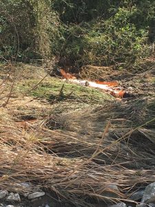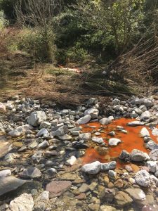 Il fiume per un lungo tratto perde il suo colore naturale che dovrebbe essere trasparente o al massimo verde, e diventa rosso-arancione. Il fenomeno delle acque rosse si sta manifestando da almeno 20 giorni, senza che nessuno abbia preso provvedimenti. Non si conosce la natura della sostanza che sta colorando le acque, ma in alcuni punti è facile riscontrare la presenza di piccoli semi, cosa che farebbe pensare a residui di pomodoro. Anche se dovesse trattarsi di sostanze “ naturali” e quindi non chimiche, la situazione non è meno grave, la presenza continua di questi liquidi anomali sta mettendo a rischio l’ecosistema, non vi è più la presenza di piccoli pesci o rane, e questo è un segnale da non sottovalutare. Intanto queste immagini ne denunciano la gravità del fenomeno che in maniera quasi matematica si manifesta in prossimità dell’arrivo dei temporali.