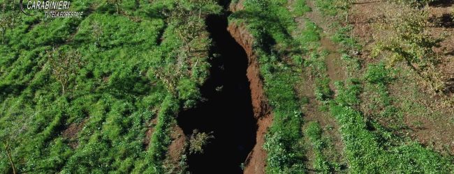 Dagli accertamenti esperiti, i Carabinieri Forestali hanno riscontrato che l’origine della frana è stata scatenata da una serie di lavori effettuati in fondi privati ubicati più a monte. Per tale motivo, la P.G. operante ha denunciato quattro persone, proprietarie dei fondi ricadenti nell’area franosa, che precedentemente avevano effettuato, illecitamente, la soppressione di un bosco di circa 7.000 metri quadrati mediante il taglio a raso di piante autoctone e la trasformazione dello stesso in altre colture agrarie.