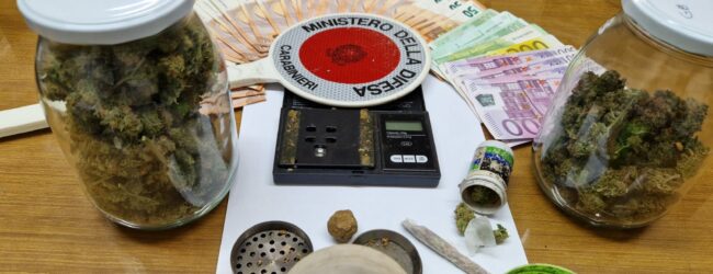 Durante l’esecuzione di tale servizio d’Istituto, nella serata di ieri, un equipaggio della Sezione Radiomobile procedeva al controllo di un’autovettura sospetta con due persone a bordo. Notato l’atteggiamento e la condotta nervosa del conducente – un 32enne del luogo – il personale procedeva ad approfondire gli accertamenti con l’esecuzione di una perquisizione veicolare sul posto che consentiva di rinvenire nel vano portaoggetti della portiera uno spinello e, nascosto tra la leva del cambio ed il sedile guida, un involucro con all’interno grammi 2,5 di marijuana. A seguito di tale ritrovamento l’attività veniva estesa alle rispettive abitazioni con il rinvenimento e sequestro in quella del 32enne, di grammi 80 di marijuana contenuti in due grossi barattoli in vetro occultate in uno pneumatico collocato nella camera da letto; grammi 4 di hashish in un involucro; un bilancino di precisione nonché la somma in contanti di euro 4.400,00 in banconote di vario taglio. Nell’abitazione del passeggero, un 27enne anch’egli della zona, veniva ritrovato un recipiente in vetro contenente un (1) grammo circa di marijuana.