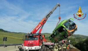 Intanto nella palestra di Grottaminarda dove sono stati ospitati la maggior parte dei passeggeri del bus, solo una decina di persone stanno ora attendendo l’arrivo di un pullman sostitutivo che li condurrà a Roma. Altri quindici passeggeri sono stati portati per ulteriori accertamenti medici nell’ospedale di Ariano Irpino. Altri ancora, invece, le cui condizioni non destavano preoccupazione, sono stati raggiunti da parenti in auto che li hanno portati via.