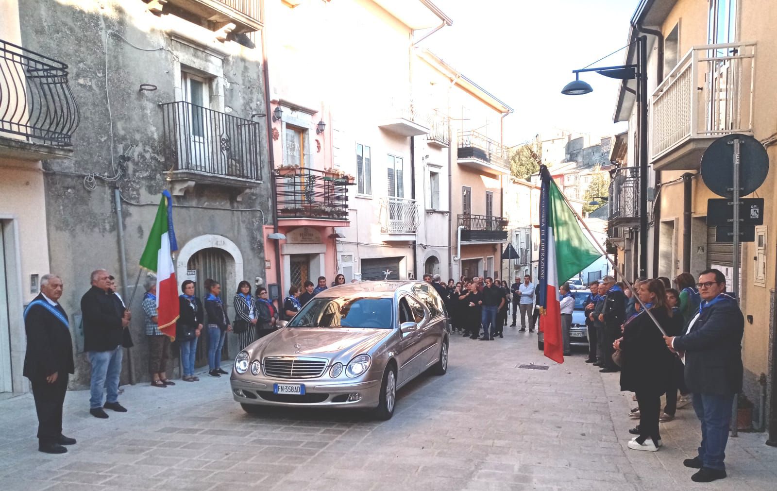 Erano presenti oltre ai familiari e agli amici, i soci delle tre sezioni che con le loro bandiere e i foulard l’hanno abbracciato simbolicamente in questo corteo che testimonia il nostro affetto, la nostra stima e la nostra vicinanza alla famiglia.