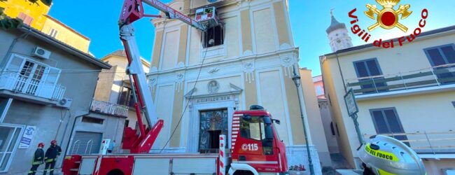 I Vigili del Fuoco di Avellino hanno ultimato le operazioni di messa in sicurezza della Chiesa di San Ciriaco in piazza Vittoria a Torre Le Nocelle. Dopo il vasto incendio che si era sviluppato alle 2.30 della notte scorsa, le operazioni di spegnimento dell’importante edificio di culto del comune Irpino, lunghe e delicate che hanno visto impegnate diverse squadre anche con mezzi speciali, sono durate molte ore, per poi in mattinata vedere i Vigili del Fuoco mettere in sicurezza la struttura rimuovendo tutte le parti in pericolo di caduta, e recuperare le molte reliquie custodite nella Chiesa.