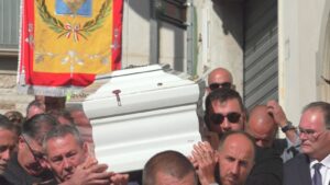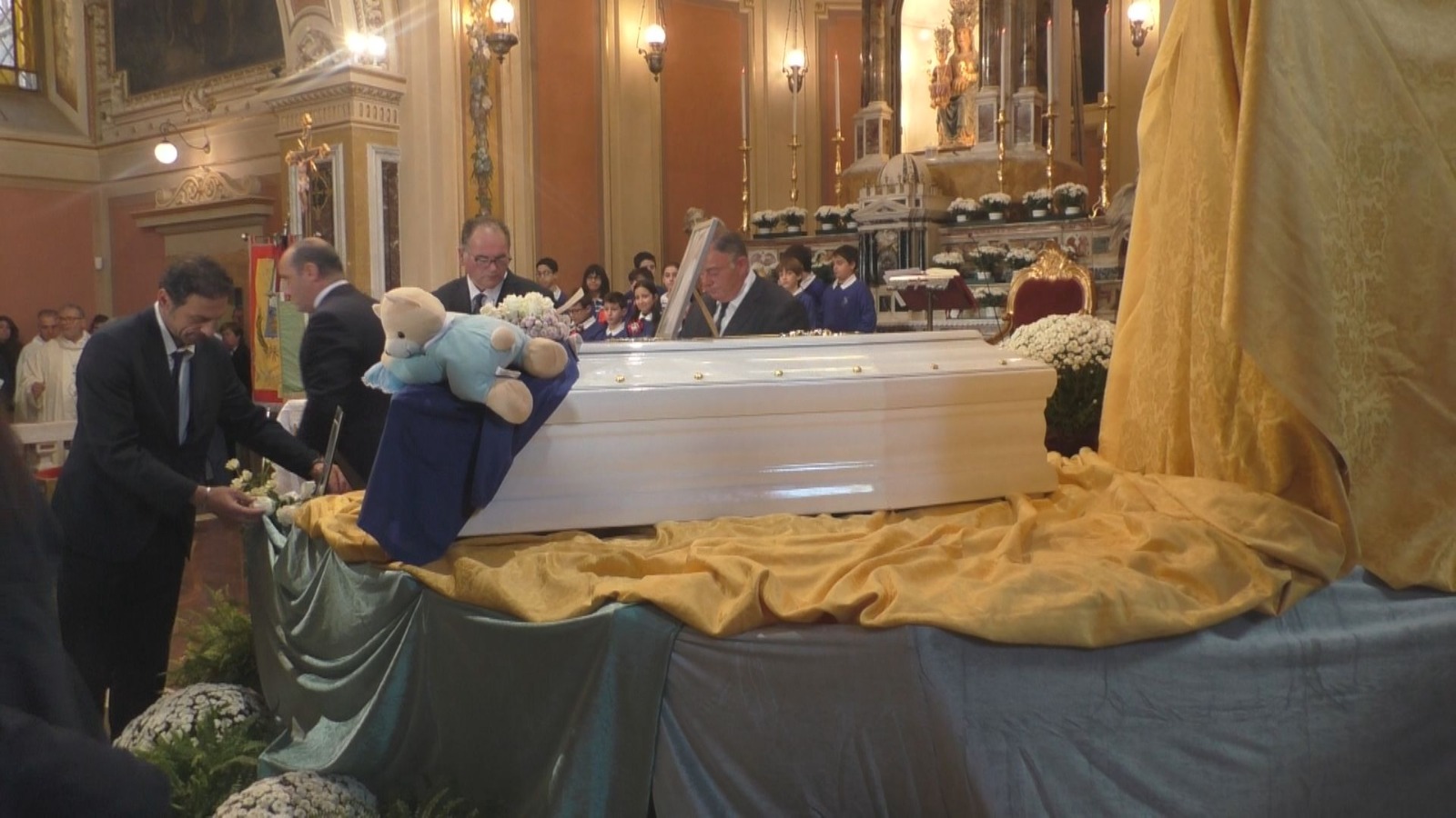 Il feretro bianco è arrivato nell’antico Santuario di Maria Santissima della Misercordia scortato dai suoi compagni dell’istituto comprensivo “Luigi De Prisco”, che indossavano tutti il grembiule blu. Sulla bara la foto della prima comunione, il suo orsacchiotto preferito e il suo grembiulino.