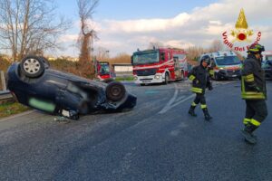 I Vigili del Fuoco di Avellino sono intervenuti nel pomeriggio di oggi sulla strada provinciale 88, all’intersezione con la 7Bis, a seguito di un incidente stradale che ha coinvolto due autovetture. In seguito al violento impatto, una delle auto si è ribaltata. Il conducente di quest’auto, un uomo, è rimasto incastrato nell’abitacolo.
