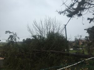 A Reino, le forti raffiche di vento nella notte hanno abbattuto un grosso albero in una proprietà privata. Il pino alto almeno 10 metri ha trascinato a terra i cavi dell’alta tensione facendo saltare la corrente in tutta la contrada.