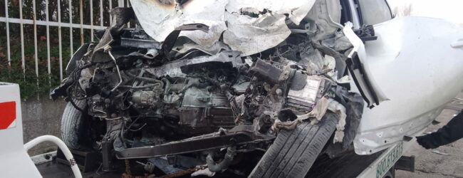 Lo scontro ha coinvolto un’auto,una Renault Captur e un autoarticolato che proveniva in senso opposto, con un impatto devastante che ha distrutto il veicolo e lo ha sbalzato sulla carreggiata. Coinvolte acne due auto ma illese.