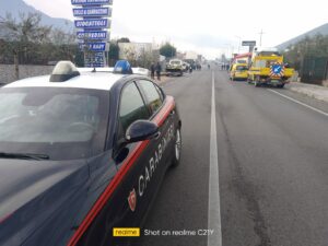 Immediatamente è scattato l’allarme, con l’arrivo sul posto dei vigili del fuoco del distaccamento di Bonea, dei carabinieri e dei sanitari del 118, che hanno prestato i soccorsi. Il traffico sulla statale è stato bloccato per consentire l’intervento dei soccorritori e i rilievi necessari a ricostruire la dinamica dell’incidente.