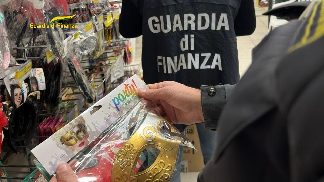 Nel corso di un ulteriore controllo presso un esercizio commerciale di San Salvatore Telesino, i militari della Tenenza di Solopaca hanno accertato la presenza di circa 38.000 articoli di vario genere, tra i quali maschere di carnevale e altri articoli per il travestimento, privi del marchio CE e delle indicazioni relative all’origine del prodotto e delle informazioni destinate ai consumatori.