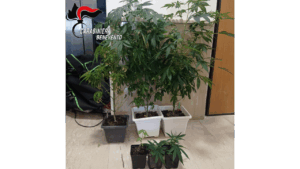 L’arrivo immediato dei Carabinieri ha interrotto l’aggressione. I militari hanno tratto in arresto l’uomo, mettendo in sicurezza le vittime e sequestrando le armi improvvisate utilizzate nell’attacco. Nel corso della perquisizione domiciliare, gli operanti hanno inoltre rinvenuto una piccola serra artigianale contenente sei piante di marijuana di varie dimensioni.