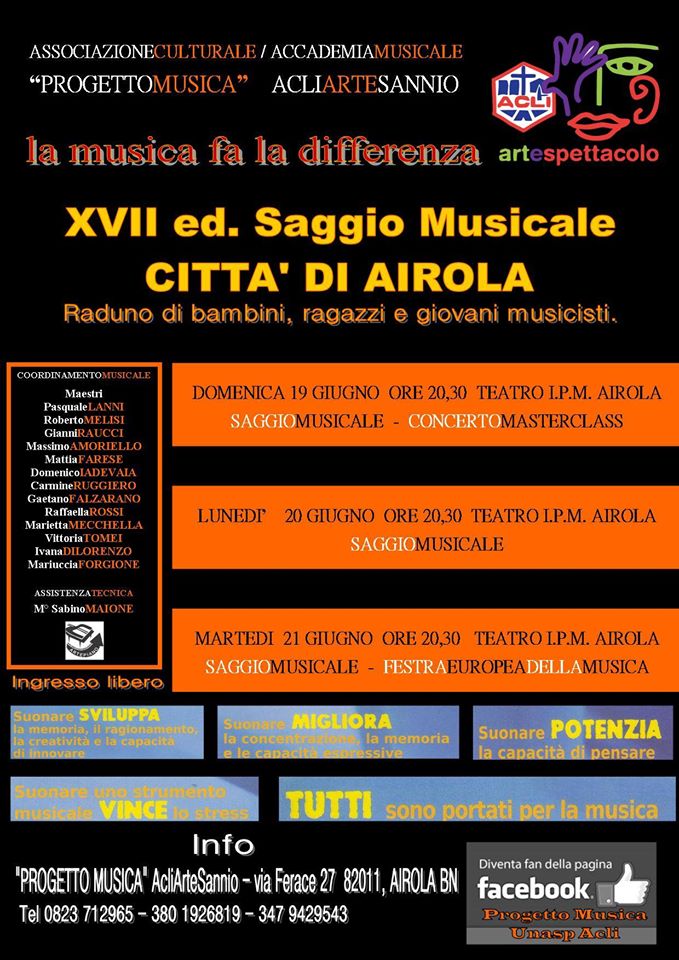 AIROLA – Si è concluso con la XVII edizione del saggio musicale, un anno intenso e ricco di impegni didattici ed extradidattici per l’accademia Progetto Musica Acli ArteSannio di Airola.
