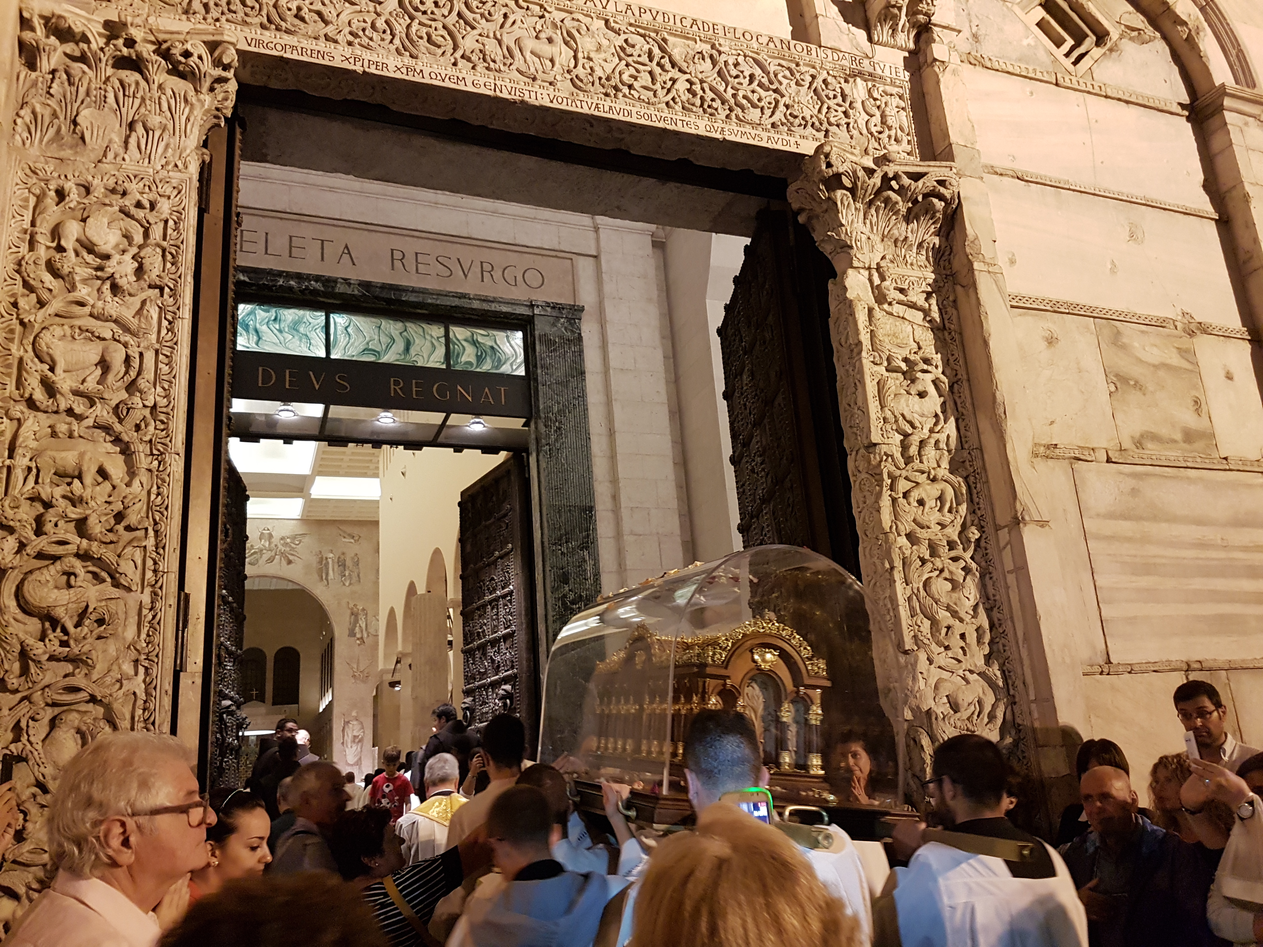 BENEVENTO – Un Duomo gremito di fedeli quello apparso agli occhi di Santa Teresa di Gesù Bambino, patrona di Francia giunta nella Cattedrale della città. Ad accogliere le reliquie con emozione i sacerdoti, religiose e tutto il clero beneventano che hanno voluto omaggiare l’urna di vetro. Un pellegrinaggio organizzato dalla Provincia napoletana dei Carmelitani Scalzi iniziato il 12 settembre da Villa Literno. Le reliquie sono state accompagnate da padre Antonio Sangalli, vice-postulatore della canonizzazione dei coniugi Martin, genitori della santa, avvenuta il 18 ottobre scorso. L’urna toccherà varie tappe in Italia meridionale, verrà portata in varie chiese e diocesi italiane sino alla Sicilia. Il viaggio si concluderà il 2 ottobre a Bari per la solennità della Santa, dottore della Chiesa e patrona delle missioni. Applausi e lanci di petali di rose da parte del rettore della Cattedrale mons. Abramo Martignetti e di padre Andrea L’Afflitto, carmelitano. Benevento ha dunque la possibilità di venerare le reliquie fino alle ore 24 di questa sera. Sabato invece dalle ore 7 fino alle ore 19 quando si terrà la solenne concelebrazione della Santa Messa presieduta da mons. Pompilio Cristino, vicario generale dell’arcidiocesi di Benevento, subito dopo, la partenza alla volta di Bari.