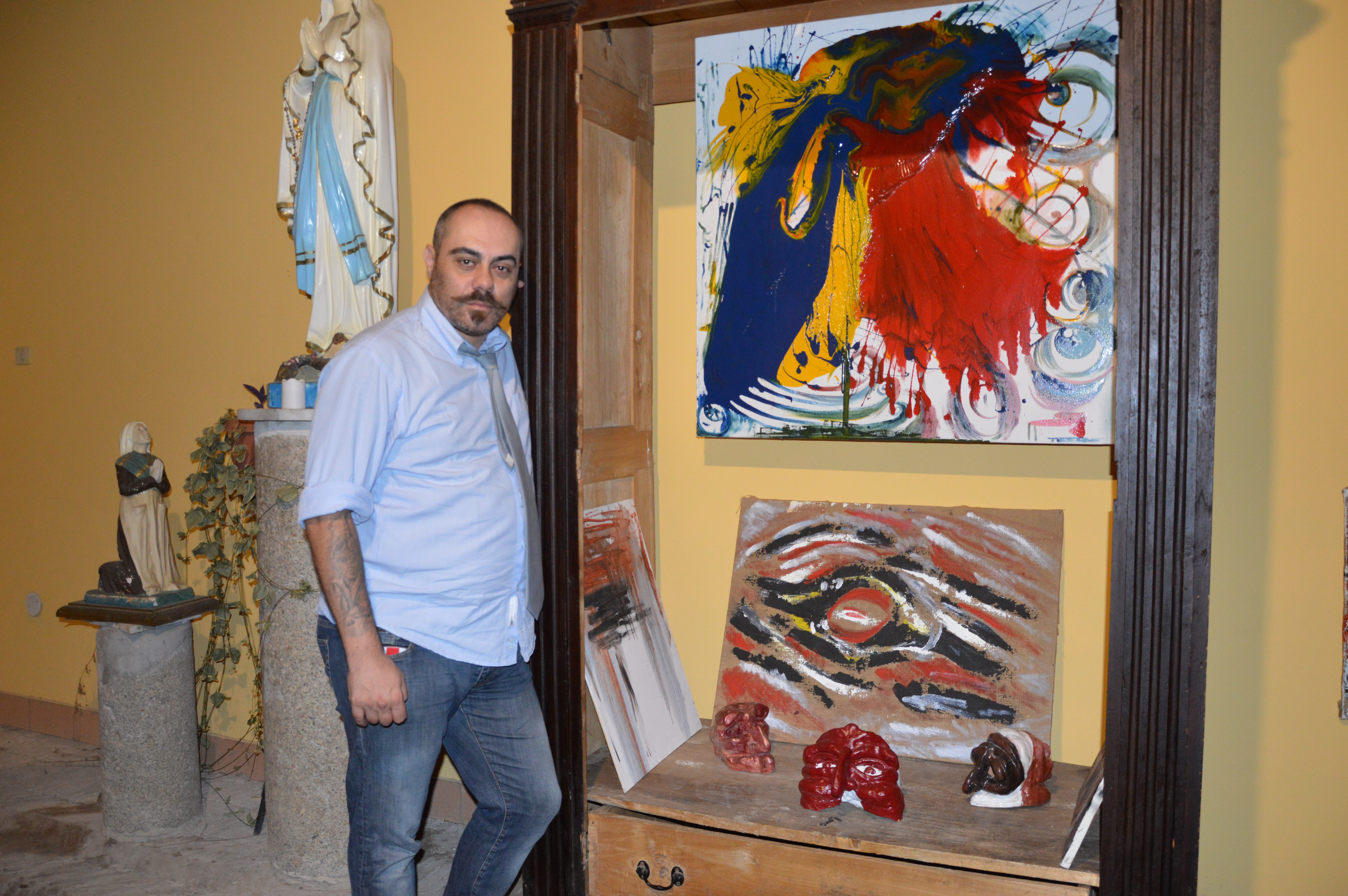 Siamo ai Concerti della Bottega, la kermesse culturale ideata dall’associazione culturale L’Art du Luthier, con la direzione artistica di Enrico Minicozzi. Quattro serate di puro spettacolo, cultura, danza, libri, musica, arte. Lui, è Alfredo Troise, pittore 41enne napoletano, lo incontro sotto il porticato del Chiostro di San Francesco, dove la kermesse prende vita.Mi fa vedere le sue tele, le sue sculture, ne parla con orgoglio e disprezzo insieme, con amore poi. Alfredo è un ragazzo che sprigiona energia, vitalità, tenerezza. La stessa tenerezza e rabbia che mette nei suoi quadri di natura espressionista. Cosa dipingi?