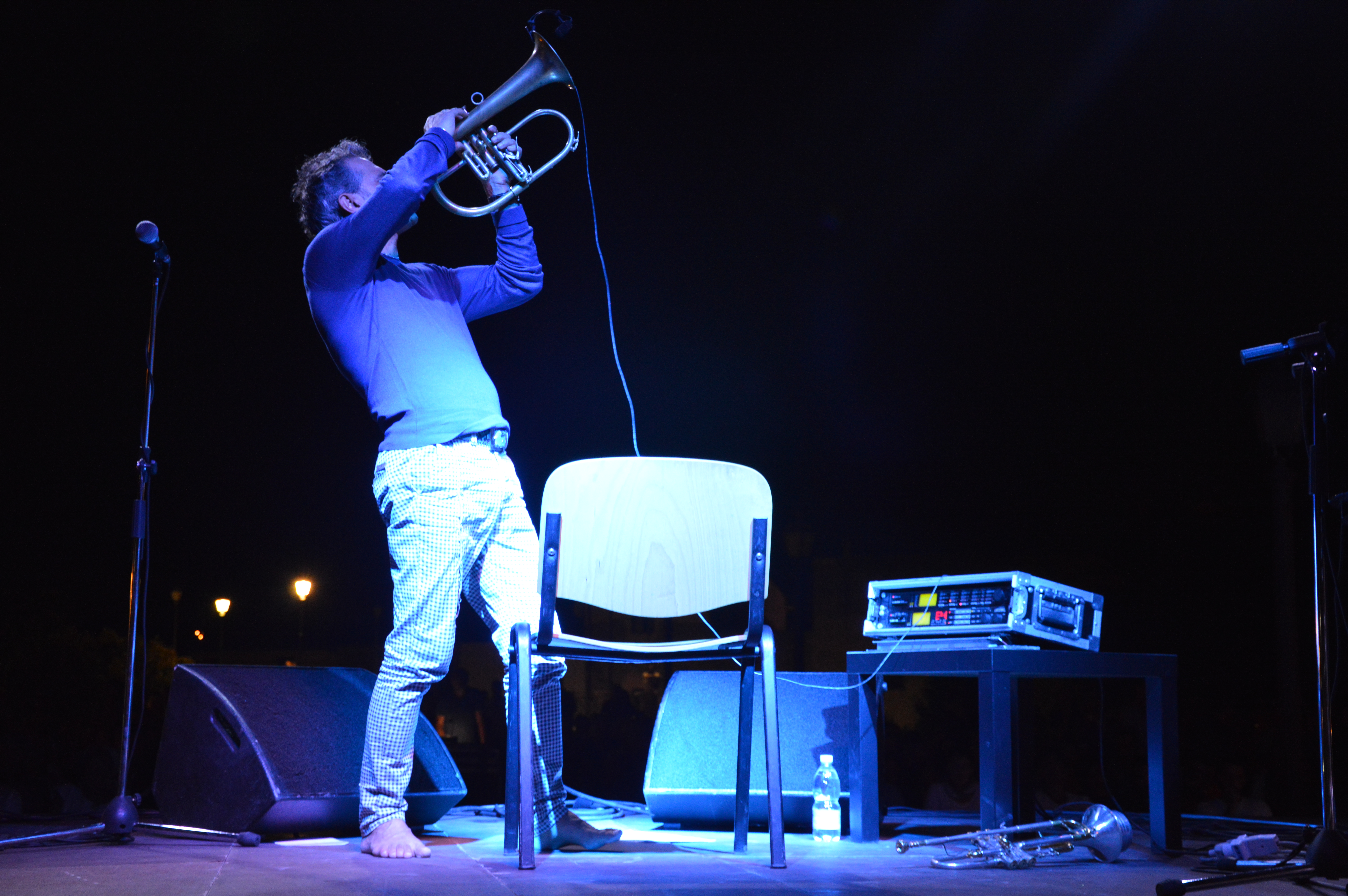 A piedi scalzi,luci soffuse,il palco come una nuvola appena sospesa tra la gente. Lui è Paolo Fresu, la sua tromba, un pianoforte e il suo pianista, Uri Caine. Il resto è semplicemente e meravigliosamente Jazz.