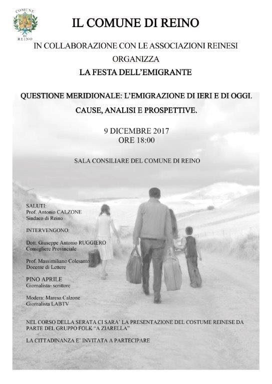Un convegno interessante e di spessore culturale alto, quello che si è tenuto a Reino nell’ambito della Festa dell’Emigrante, un evento organizzato dal Comune e dalle Associazioni reinesi. Questione Meridionale: l’emigrazione di ieri e di oggi.Cause,Analisi e prospettive, questo il tema affrontato al tavolo dei relatori.Una presenza importante ha arricchito il livello culturale della serata, lo scrittore e giornalista Pino Aprile. Ad aprire i lavori, il sindaco Antonio Calzone che si è soffermato sugli aspetti demografici dei comuni dell’entroterra campano,tracciando una mappa delle migrazioni e del fenomeno di spopolamento delle aree sannite a partire dall’Unità d’Italia ai giorni nostri, ripercorrendo le dinamiche che hanno portato alle migrazioni di lavoratori verso paesi come Argentina e nord Europa, per poi passare alla crisi economica degli ultimi dieci anni e delle conseguenze che ancora viviamo.Le migrazioni non riguardano solo flussi di persone, ma con esse anche pezzi di tradizioni e cultura, per scongiurare la fine di tutto questo, si è dato vita ad una Associazione culturale di recente costituzione, che intende promuovere la ricerca e la catalogazione di fatti, eventi, tradizioni locali e storia.Di questo ne ha parlato Massimiliano Colesanto, docente di lettere. Sono intervenuti inoltre il consigliere provinciale Giuseppe Antonio Ruggiero, il M° Giovanni De Nunzio che ha parlato dell’importanza della tradizione legata alla musica e alla danza del Gruppo folkloristico “A Ziarella”, che da anni propone a livello internazionale la tipicità delle tradizioni reinesi. A tenere alto l’interesse del pubblico presente in sala, è stato l’intervento, per certi aspetti “teatrale”di Pino Aprile, giornalista e scrittore esperto della “questione meridionale”. “Cosa vuol dire essere meridionali? significa non avere identità. Abbiamo acquisito questa definizione solo rispetto a chi ci ha definito così un secolo e mezzo fa…perdendo così l’identità, ma siamo Sanniti, Irpini ecc…”ha rimarcato Aprile, che ha parlato delle ragioni che hanno spinto la gente del posto ad abbandonare il territorio, pensando di non poter vivere bene. Tutto fa capo alla distribuzione della ricchezza, questo territorio da sempre a vocazione agricola necessita di esperti del settore, non più di semplici contadini, ma di imprenditori agricoli che abbiano cultura, tecnologia senza lasciare la tradizione. E’ importante comprendere che la soluzione ce l’abbiamo sotto i piedi.Le cose non succedono,succedono le cose che vogliamo far succedere. Poi dovremmo smettere di pensare a noi come meridionali,perchè è un concetto che non può esistere visto che la terra è tonda, il centro può essere ovunque… il centro può essere anche Reino”. Ha concluso Pino Aprile.
