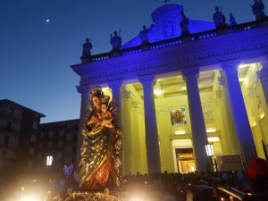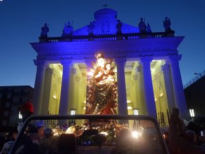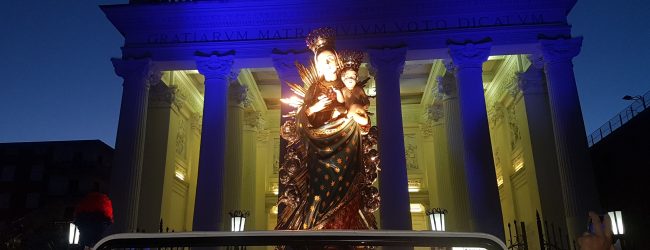 Emozioni e batticuore nella Basilica affollata di fedeli per assistere all’uscita straordinaria della statua della Madonna delle Grazie in viale San Lorenzo. Un evento nato per “solennizzare” la decisione di Papa Francesco di rendere obbligatoria la memoria di Maria Madre della Chiesa, da celebrarsi il lunedì dopo la Pentecoste.