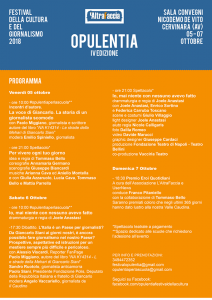 Dal 5 fino al 7 Ottobre a Cervinara (AV) ha luogo la IV edizione di Opulentia Festival della cultura e del giornalismo. L’edizione 2018 della kermesse promuove la libertà d’informazione, proponendo tra i propri ospiti personalità che hanno speso la propria vita per questo, e la tutela delle minoranze sociali e culturali.