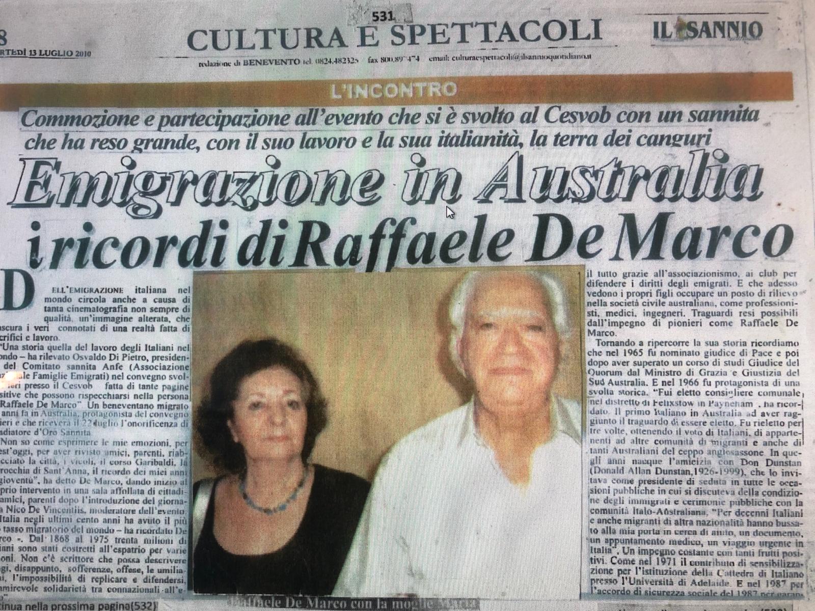 Raffaele De Marco, nativo di Benevento, classe 1932, emigrò dalla sua madrepatria verso il continente oceanico nel 1956, all’età di 24 anni.