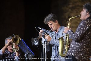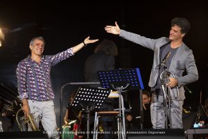 L’Orchestra Filarmonica di Benevento ha compiuto un’altra magia ieri sera al Teatro Romano.La magia è la fusione delle sonorità create da due grandi nomi del Jazz italiano,Luca Aquino e Paolo Fresu per “Let’s Jazz”. La serata realizzata nel pieno rispetto delle misure anticovid, ha fatto registrare il sold out per i due spettacoli che si sono susseguiti.Immensa l’OFB, diretta per l’occasione dal Maestro Raffaele Tiseo.Il Teatro Romano si risveglia nelle luci, e nel soffio delle trombe,è pura poesia,vibrante di eleganza, sono le atmosfere dei grandi classici jazz.
