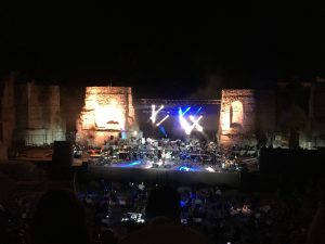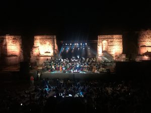 Ci sono emozioni che ti si attaccano addosso per sempre, per una serie di combinazioni, il luogo, le persone,l’esperienza che ti appresti a vivere.E’ quello che si è materializzato ieri sera al Teatro Romano Di Benevento, dove quel momento magico è accaduto a tutte le persone che hanno assistito ad un concerto spettacolare, quello di Max Gazzè e l’Orchestra Filarmonica di Benevento.Il Teatro Romano sembrava disegnato apposta per l’evento,l’abbraccio delle mura con la loro storia secolare, ha stretto il pubblico fino all’ultima canzone, sancita da una standing ovation. Il Concerto rientra nel Cartellone del BCT, il festival diretto da Antonio Frascadore, che si è detto soddisfatto di tutta la Kermesse.