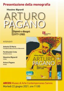 Presso la Sezione Arte Contemporanea del Museo Arcos di Benevento alla via Stefano Borgia – angolo Corso Garibaldi sarà presentata al pubblico, martedì 22 giugno 2021, alle ore 11.00, la monografia di Massimo Bignardi “Arturo Pagano, Dipinti e disegni 1977-1985″. Il saggio accompagna la Mostra dallo stesso titolo, inaugurata in Arcos lo scorso 13 maggio, con quaranta Opere del Maestro di Torre del Greco (NA). Alla presentazione della monografia prenderanno parte il Presidente della Provincia, Antonio Di Maria, il Direttore di Arcos, Ferdinando Creta, l’Artista Arturo Pagano e lo stesso critico d’arte Bignardi.