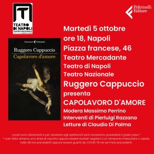 Martedì 5 ottobre a Napoli in Piazza Francese al civico 46, Teatro Mercadante, Teatro di Napoli, Teatro Nazionale, Ruggero Cappuccio presenta “Capolavoro d’amore”. L’appuntamento culturale è previsto alle ore 18.00 e sarà moderato da Massimo Perrino con gli interventi di Pierluigi Razzano e le letture a cura di Claudio Di Palma. Il pubblico accede solo con Green pass.